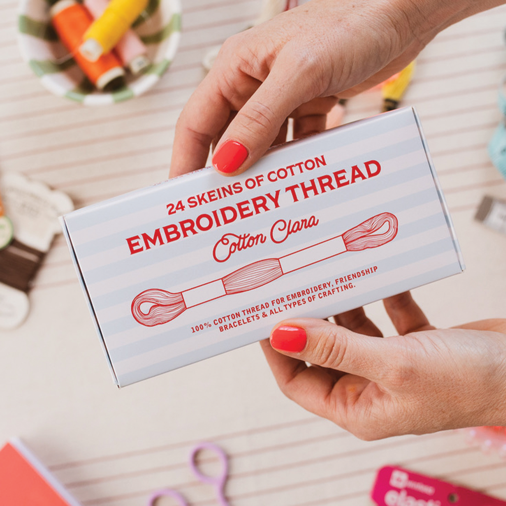 Add a burst of colour to your craft projects with our 24 Cotton Embroidery Skeins, beautifully packaged in our signature striped box. This rainbow collection includes a wide range of shades, from soft pastels to bold brights, plus our exclusive neon colours that you won’t find anywhere else.